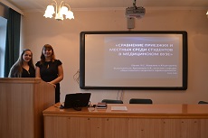 | Ксендикова А.В, Джураева Н.Е. | 544 | Пузырев В.Г., Глущенко В.А. | Влияние режима труда, отдыха и питания студентов 1и 5 курсов СПбГПМУ на успеваемость и состояние здоровья |