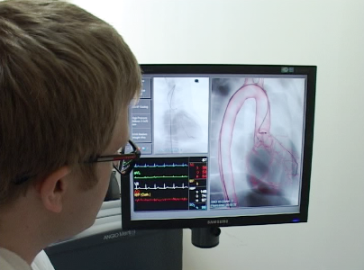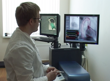Класс ангиографии оборудован компьютерным симулятором для отработки навыков проведения эндоваскулярных процедур. Симулятор позволяет проводить индивидуальные и групповые занятия и включает в себя модули по обучению вмешательствам на сонных, почечных, бедренных, подвздошных артериях, артериях головного мозга, сердце.