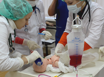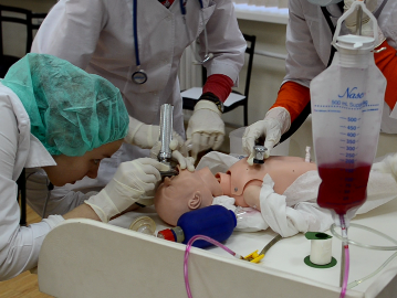 На манекенах новорожденных проводятся симуляционные тренинги по первичной реанимации и расширенной реанимации новорожденных. Отрабатываются навыки искусственной вентиляции легких, непрямого массажа сердца, интубации трахеи, катетеризации пупочной вены, медикаментозной терапии в неотложных ситуациях. Проводится обучение заменному переливанию крови при гемолитической болезни новорожденных.