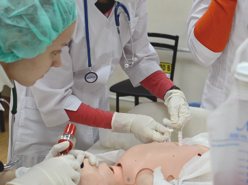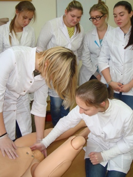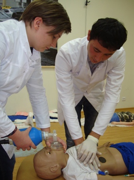 Класс первичной реанимации оборудован манекенами для обучения навыкам сердечно-легочной реанимации взрослых и детей разного возраста с обратной связью, позволяющей контролировать правильность выполнения манипуляций. Отработка техники неотложной помощи при попадании инородного тела в дыхательные пути проводится на манекенах взрослого и детей разного возраста.