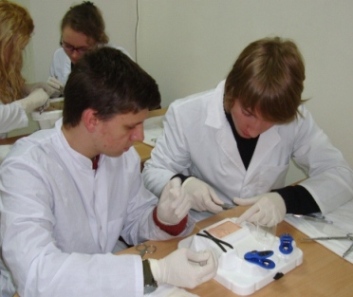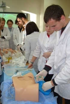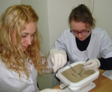В классе отработки хирургических навыков проводится обучение базовым хирургическим навыкам (завязывание узлов, наложение и снятие кожных швов, выполнение лапаротомии и послойное ушивание раны), пункции и дренированию пневмо- и гемоторакса, наложению кишечного шва, трахеостомии, аппендэктомии.