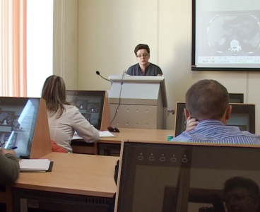 «Умный» компьютерный класс представлен системой связанных между собой электронных устройств: информация отображается на интерактивной доске и компьютерах обучающихся. Используется для проведения семинаров с большим количеством иллюстративного материала (рентгенограмм, томограмм и т.д.).